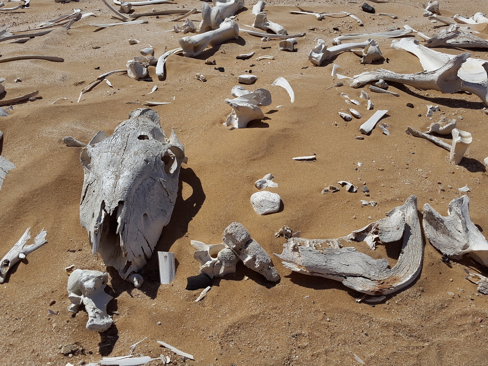 Почти неизвестное место на атлантическом побережье Намибии и исторические события, стоящие за ним. Долгое время существовало несколько версий о скоплениях лошадиных костей в дюнах в нескольких километрах от прибрежного города Свакопмунд в Намибии. Лишь ограниченное число людей, обычно водители внедорожников или квадроциклистов, натыкались на длинные ряды белых конских черепов и костей в дюнах примерно в 4 км к югу от реки Свакоп. Самый загадочный факт заключается в том, что во лбу каждого черепа есть пулевое отверстие. Самая популярная версия, которая долгое время существовала, гласила, что лошади использовались немецкими отрядами Schutztruppe во время Первой мировой войны и что они умерли от неизвестного заболевания, от пищевого отравления или недостатка пищи/воды. Но почему в каждом черепе есть пулевое отверстие? Были ли это немецкие лошади или лошади южноафриканских оккупационных сил? Скорее всего, лошади не принадлежали немецким подразделениям Schutztruppe. Никогда прежде в самом г