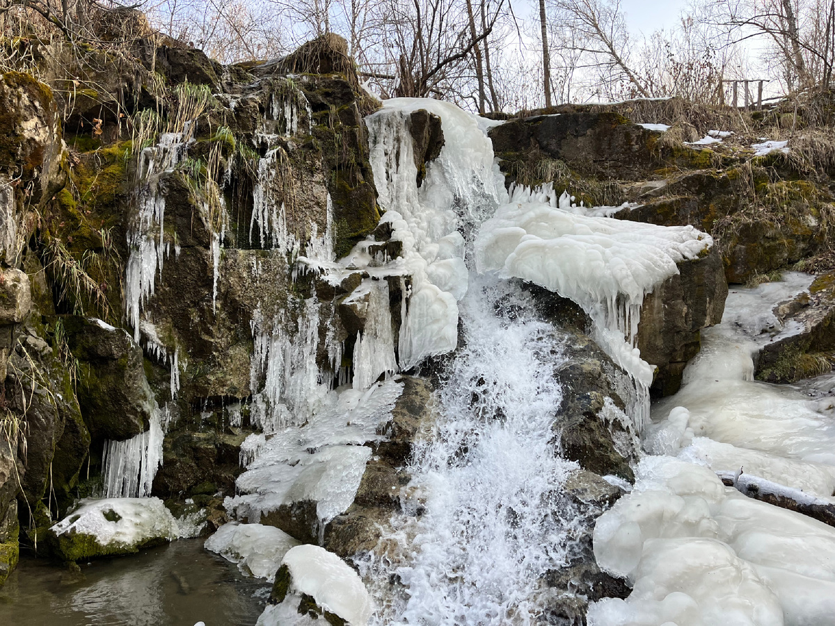 После скалы Альпинист нам показалось мало впечатлений, и я вспомнила, что рядом есть водопад Бучило. До темноты ещё было время — поехали. Нужно лишь вернуться в село Легостаево. Мы были там три года назад, но зимой — водопад тогда был почти замёрзший, весь под снегом, но всё равно интересно. Тропа была занесена, пришлось идти в обход. Основная дорога до водопада — всего около километра, но тогда мы прошли на километр больше. Подробнее в этой статье 👇 Если погода сухая, можно подъехать почти вплотную и оставить машину у информационного баннера. Мы же пошли пешком. Если стоит выбор — идти или ехать — мы всегда выбираем первое 😄 Информационный стенд рассказывает нам краткую историю места — когда-то здесь работала небольшая гидроэлектростанция. Водопад расположен на реке Талушка и имеет высоту около 5 метров. Территория облагорожена: есть мостик, лестница к обзорной площадке, беседка и даже скамейка, которой раньше не было. Теперь можно сесть и просто посидеть, полюбоваться. Мы вообщ