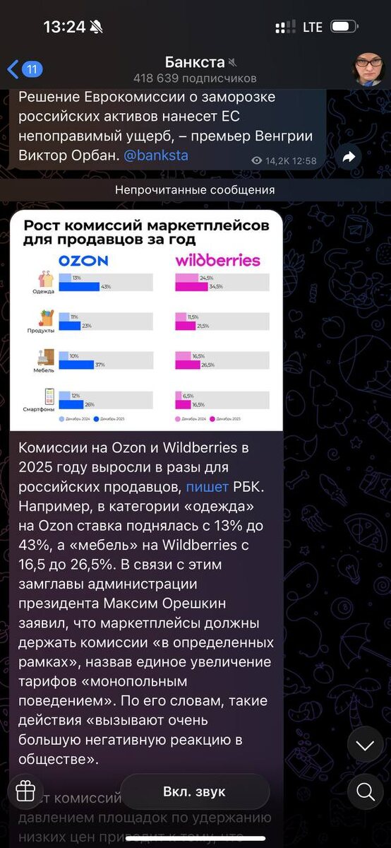 🔥Начинают форсить тему с комиссиями наконец-то Посты в подобных канал важны, тк на них подписаны различные влиятельные люди. Может так что-то поменяется в этом кровопролитном месиве с целью задушить 90% селлеров и помочь отдать российский рынок Китаю. https://t.me/banksta/83655