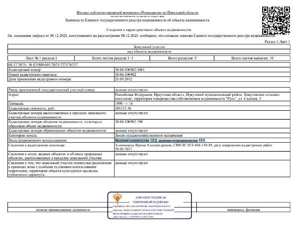 Название: Сведениями о фактическом состоянии объекта недвижимости организатор торгов не располагает. Канал: Госземля Иркутская область Область: обл Иркутская Район: м.р-н Иркутский Населенный пункт: с.п. Хомутовское, с Хомутово, ул Садовая, дом 3 Иркутская обл., Иркутский р-н, сп. Хомутовское, территория товарищества собственников недвижимости «Русь», ул. Садовая, 3. Локация: Смотреть на карте ВРИ: Ведение садоводства Кадастровый номер: 38:06:100902:1861 Кадастровая стоимость: - Вид сделки: Продажа Площадь: 1998 м² Начальная цена: 518000.00 руб. Дата завершения: 19.01.2026 Подробнее: ГИС ТОРГИ #госземля #земляотгосударства #земля #земельныйучасток #земельныеторги #торги #аукцион #продажаземли #продажа #иркутскаяобласть