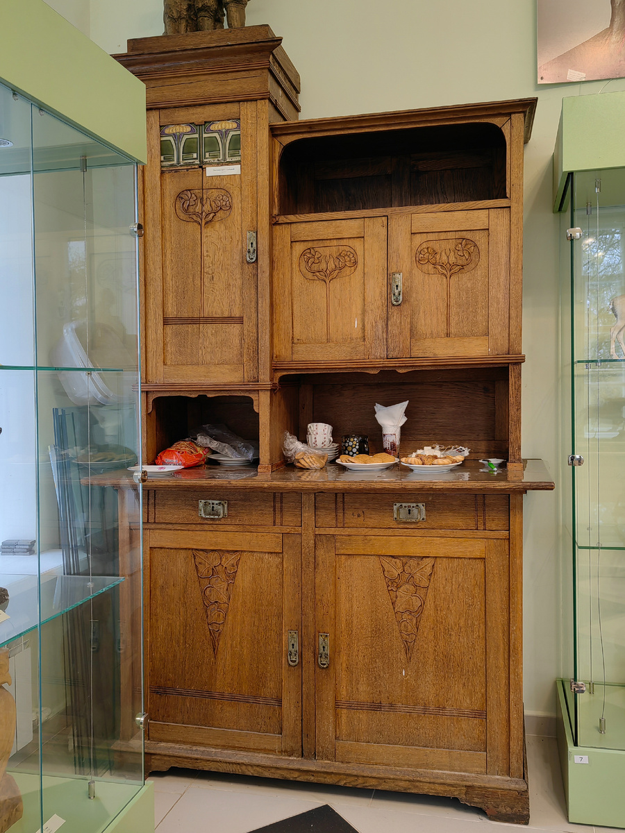 Эта мини-заметка написана для... красоты...) Обычно мы ходим в исторические музеи и посещаем тематические выставки с целью посмотреть экспонаты (предметы и документы), связанные с деятельностью того или иного человека, которому посвящёно выставочное пространство. А мне нравится ещё подмечать сторонние артефакты, которые стоят в экспозиции "для мебели". И вот, в двух таких пространствах я их запечатлел и просто хочу вам показать. Это буфет в стиле модерн начала XX (?!) века, который недавно я увидел в усадьбе Большие Вязёмы (Московская область). А это шкаф (!?) в стиле модерн с керамическими панно из дома-музея И.П. Пожалостина в Рязани (исторический район Солотча) А вам нравится такие предметы быта? Фотографируете их? Мне они бросаются в глаза даже не в тематических музеях. А просто в каком-то конференц зале, в холле, ведущей к экспозиции... ещё где-то... Люблю такие вещи! Ну, и раз я их фотографирую, то показываю вам!) Кстати, книгу про скульптора, о котором начал рассказыва