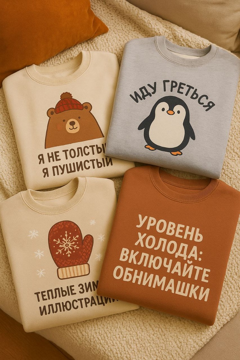 Уют — это не только мягкая ткань и тёплый чай. Уют — это когда ваш свитер говорит за вас: Улыбается, шутит, напоминает о чём-то милом или просто делает день теплее. И лучший способ добавить в него этого «волшебства» — ДТФ-печать. Ва Групп делится, как превратить обычный свитер в тёплого друга, стильный аксессуар и уникальный предмет гардероба сразу. 🔥 Почему ДТФ-печать творит чудеса? Потому что: дизайн держится долго, не трескается, не боится стирки; можно печатать любую картинку — от минималистичного рисунка до яркого новогоднего принта; подходит для любой ткани, даже пушистых и сложных; выглядит ярко, мягко и супер качественно. Так вы сможете сделать свитер вашим — не похожим ни на чей другой. 🎨 7 идей, как сделать свитер уютнее с помощью ДТФ 1. Тёплые зимние иллюстрации Снежинки, огонёчки, кот с какао, лампочки — всё, что создаёт настроение «хочу идти смотреть “Один дома”». 2. Персональная надпись Ваше имя, забавное обращение, семейная фраза или даже внутренняя шуточка: «Уровень х