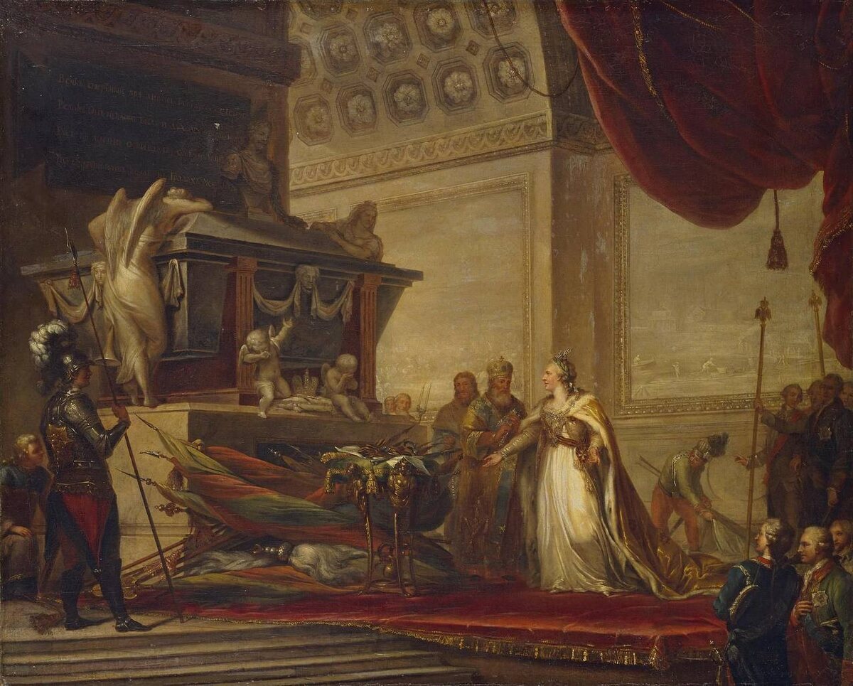 Андреас Каспара Гюне «Екатерина II возлагает Чесменские трофеи на гробницу Петра I» 1791