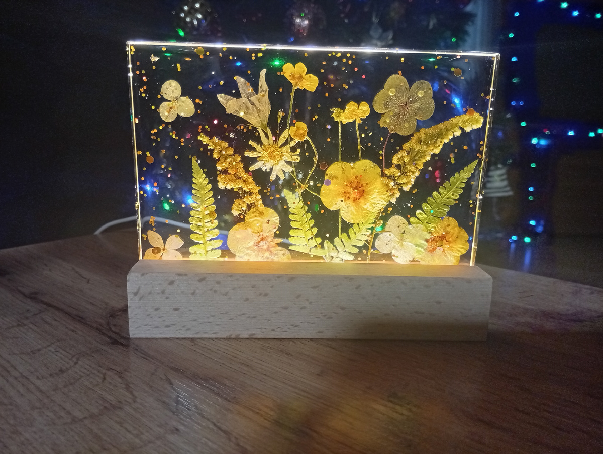 Я делаю сразу несколько . Но в этот светильник более менее полноценно готов. Надо бы края зашкурить, Но соседка выпросила так как есть. Мне нравится . Поскольку пробовала пока смолу, цветочки не самые красивые. И начала делать столик