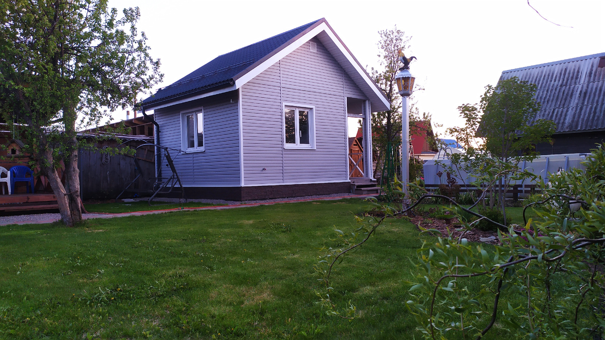 У нас на участке есть один объект. Выглядит он весьма фешенебельно, учитывая, его не очень высокий статус. Это - не жилой дом. Это, так сказать, место, где мой великовозрастный (почти сорокет) сын занимается своим хобби. Ну, по порядку. Осенью 2020 года мой старший ребёнок попросил меня ткнуть пальцем на то место на участке, где мне не жалко выделить ему пол-сотки. Честно признаться, мне было жалко везде, участок небольшой (неполных 10 соток), а планы у меня на него были глобальные. Но безмерная любовь к сыну позволила мне запихать жадность подальше и я, хорошенечко подумав, это место ему указала. Вернее, указала на избушку на курьих ножках, которую надо было сначала убрать с этого места. Предыдущий хозяин очень любил мастерить и снести нам пришлось немало. Хорошо, что тогда ещё были таджики, всё разобрали за два часа и три тысячи. После этого сын сделал разметку и даже успел соорудить столбчатый фундамент. Но тут пришла зима-матушка и пришлось прерваться. Вот это уже апрельское фо