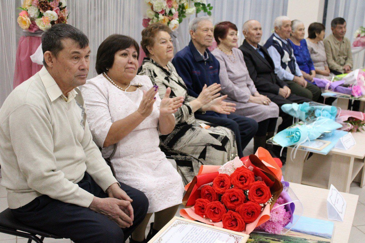 Во Дворце культуры села Раевский чествовали одиннадцать семейных пар, чей совместный путь измеряется добрыми десятилетиями. Зал аплодировал тем, кто пронес любовь и верность через полвека и даже больше. 65 лет рука об руку идут по жизни Альфия и Фаниль Галиевы, золотую свадьбу отпраздновали Наталья и Анатолий Митяевы, Нажия и Александр Калякины, Разиля и Миниахмет Зариповы из Раевского, Гульназира и Рафик Дельмухаметовы, Динура и Шамиль Закиахметовы из Шафраново, Аниса и Дамир Фазыловы из Трунтаишево, Амина и Рауф Муллагалеевы из Чураево, Зоя и Минигалей Низамовы из Казанки, Разиля и Ильдар Ахмадеевы из Чебенлей. Завершал этот славный ряд 40-летний юбилей Луизы и Флюра Вильдановых из райцентра. Глава администрации Наиль Абелгузин, поздравляя виновников торжества, подчеркнул, что их главная награда - не медали, а ежедневный труд любви и взаимного уважения. - Желаю вам крепкого здоровья, семейного счастья и долгих лет совместной жизни. Пусть любовь продолжает согревать сердца, вдохновля