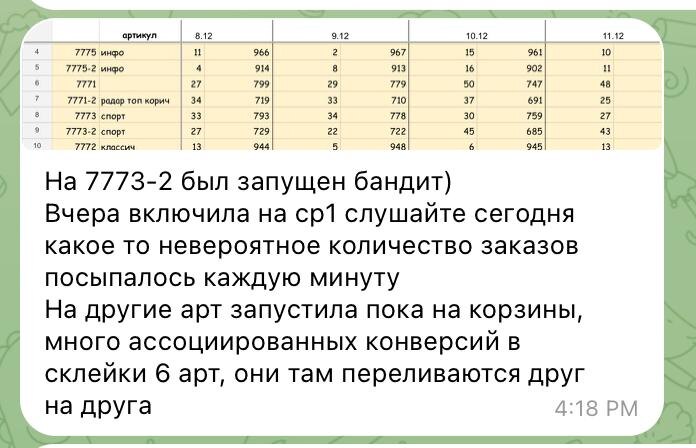 В ответ на пост 🚀🚀🚀Ученик потока экспресс прожарка, применил стратегию день корзины/день заказы в МНОГОРУКОМ БАНДИТЕ 📈📈📈 WBRadar 🔝