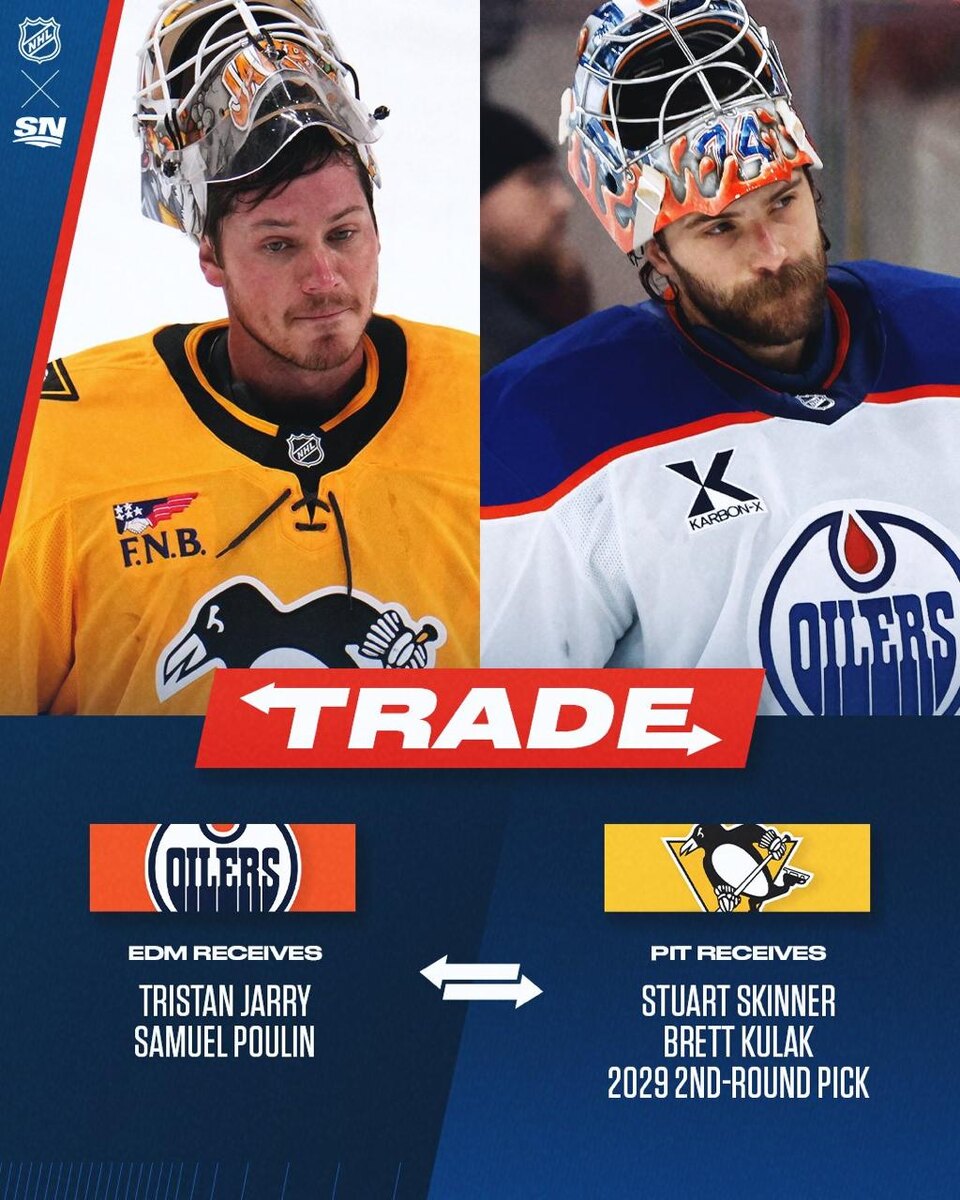 ⚡️🐧🛢️ Стюарт Скиннер в результате обмена отправляется в «Питтсбург», а ворота «Эдмонтона» теперь будет защищать Тристан Джерри