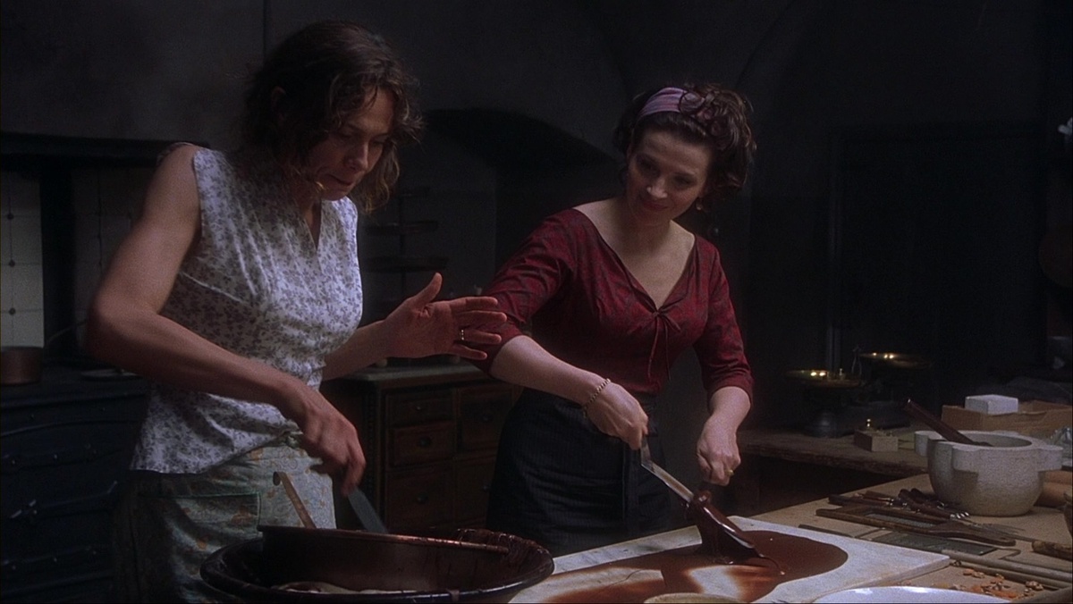 Жюльет Бинош играет Виенн не просто как кондитера, а как внимательного, почти волшебного наблюдателя. Она смотрит в самую суть людей и через шоколад даёт им именно то, о чём они молчат. Она исцеляет, но сама несёт свою собственную рану.