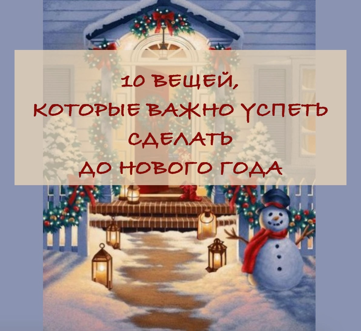 10 ВЕЩЕЙ, КОТОРЫЕ ВАЖНО УСПЕТЬ СДЕЛАТЬ ДО НОВОГО ГОДА ⠀ ⠀🎉 Выбросить старые, ненужные вещи ⠀ ⠀ Генеральной уборке дружно говорим «Да!». Сломанные и непригодные вещи, которые вы все мечтаете починить или переделать, — в мусорку. ⠀ ⠀ 🎉 Доделать важные дела, которые откладывали на протяжении всего года. Хотя бы одно! ⠀ ⠀ Вспомните, что вы очень хотели сделать в этом году, но так и не решились! У вас есть последний шанс. ⠀ ⠀ 🎉 Попросить прощения у тех, кому вы причинили боль или кого обидели, и самим простить обидчиков ⠀ ⠀ Важно прийти в Новый год без чувства обиды за плечами, с улыбкой на лице и с любовью ко всем окружающим людям. Просто напишите слово "прости". Это же так просто! ⠀ ⠀ 🎉 Сказать спасибо тем, кто сделал ваш год прекрасным ⠀ ⠀ Как же важно поблагодарить тех, кто сделал ваш год особенным! Скажите им слова благодарности и подарите открытку. ⠀ ⠀ 🎉 Провести анализ года ⠀ ⠀ Подвести итог — это неотъемлемая часть уходящего года. Освобождаем для себя любимой 10-15 минут и пр