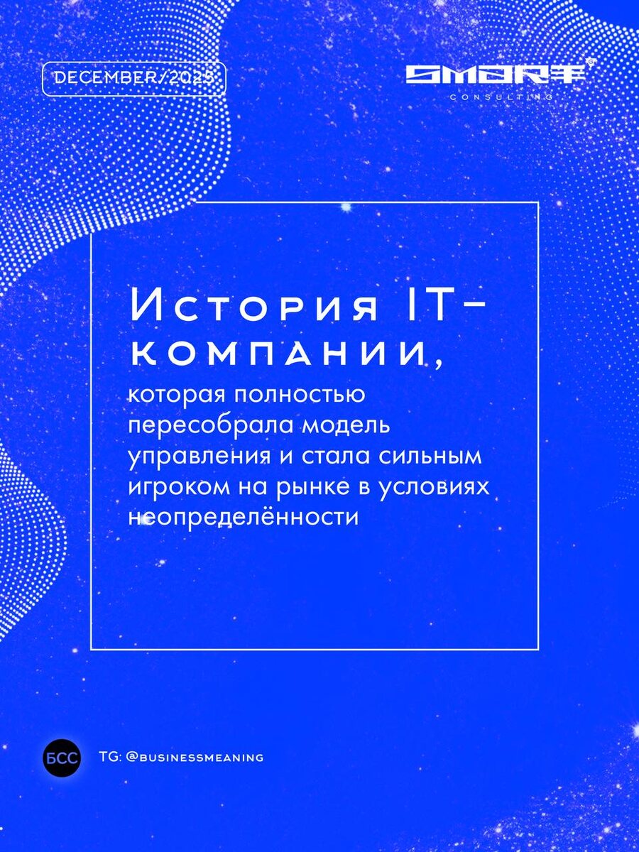 Smart Consulting – один из самых интересных кейсов самоуправления в российском IT. Пять лет назад команда отказалась от должностей, начальников и отделов – и построила собственную операционную систему Смартократию. Результат? Компания стала устойчивой к кризисам, увеличила скорости и стала технологичнее, чем когда-либо. Вот лишь несколько фактов: • 84% сотрудников предлагают инициативы по улучшениям в компании • 112 инициатив по улучшению правил работы команды реализовано за 10 месяцев этого года; • 10 млн рублей сэкономлено на операционных совещаниях за счёт новой культуры проведения встреч • процессы автоматизируются за счёт внедрения технологий искусственного интеллекта: цифровой двойник компании, ИИ-ассистенты, команда вайб-кодинга • в 2024 году компания восстановилась с 0 после масштабной кибератаки, и всё это вывозила команда, не основатель Смартократия – живая, адаптивная система, где каждый понимает свою роль и может влиять на будущее компании. И это не просто красивые с