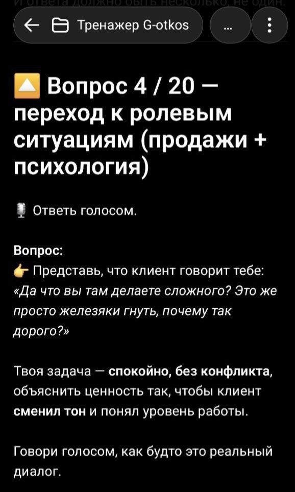У всех подписчиков ответ на этот вопрос должен от зубов отлетать! Кто даст самый лучший ответ, получит приз - месячная подписка на тренажера "форс-подготовки продавца изделий из жести"! Судить будет наша нейросеть, на которой мы создали тренажер.