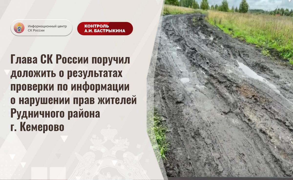 Глава СК России поручил доложить о результатах проверки по информации о нарушении прав жителей Рудничного района г. Кемерово В социальной сети сообщается о нарушении прав жителей Рудничного района города Кемерово. В 2021-2022 гг. гражданам льготной категории предоставили земельные участки для индивидуального жилищного строительства без надлежащей инфраструктуры: отсутствуют системы газо- и водоснабжения, водоотведения, а также социальные объекты и подъездные пути. Так, дорожное полотно при выпадении осадков регулярно размывается, на поверхности образовались многочисленные ямы, в зимнее время уборка снега не производится. Многочисленные обращения в компетентные органы результатов не принесли, мер к разрешению ситуации не принимается. В СУ СК России по Кемеровской области – Кузбассу организована процессуальная проверка. Председатель Следственного комитета Российской Федерации Александр Иванович Бастрыкин поручил и.о. руководителя СУ СК России по Кемеровской области – Кузбассу Павлу Вас