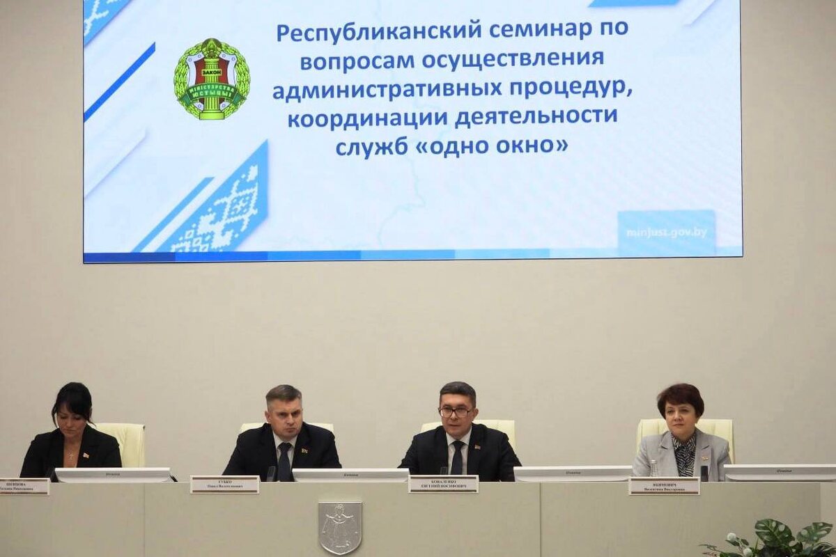 🗓🗓🗓🗓🗓 на площадке Молодечненского районного исполнительного комитета состоялся республиканский семинар по вопросам осуществления административных процедур, координации деятельности служб «одно окно». ⚡️ Перед началом мероприятия Министр юстиции Евгений Коваленко в общении с журналистами отметил, что Министерством юстиции и главными управлениями юстиции областных и Минского городского исполнительных комитетов в рамках общей координации деятельности служб «одно окно» активно изучается практика организации работы указанных служб на предмет соблюдения ими требований, предъявляемых законодательством, а также в целях масштабирования положительного опыта в республике. В текущем году Министерством юстиции изучена организация деятельности 28 служб, а главными управлениями юстиции порядка 150 служб «одно окно» в регионах. 💪 Глава ведомства также подчеркнул, что в настоящее время через службу «одно окно», в том числе по «экстерриториальному принципу», можно подать документы по 214 админис