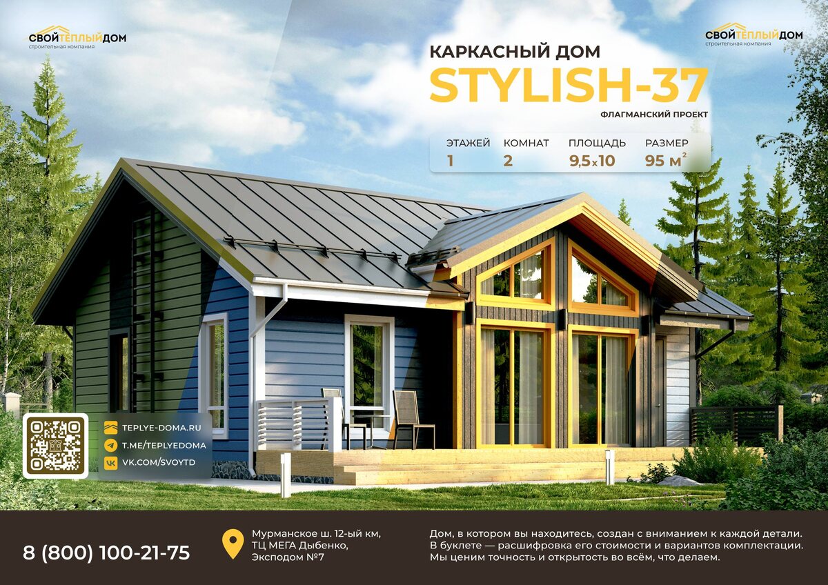 Напоминаем о флагманском проекте Stylish-37. Главные особенности: ✨ Второй свет в гостиной — много пространства и света. ✨ Эркер — уютная зона и изюминка фасада. ✨ Продуманная планировка 95 м²: кухня-гостиная, 2 спальни, котельная, санузел и выход на террасу. ✨ В карточке проекта — варианты сочетаний наружной отделки на выбор. Технические характеристики: • Площадь: 95 м² • Размеры: 9 x 10 м Стоимость: ▪️ Тёплый контур — от 3 816 540 ₽ ▪️ Сезонный дом — от 3 934 710 ₽ ▪️ Зимний дом — от 4 345 380 ₽ Успей заключить договор за наличный расчет до 20.12.25 и получи подарок — 15% скидку от полной стоимости договора. Мы строим надежно, чтобы вы жили 💛тепло! С любовью, команда Свой теплый дом✨ Info@teplye-doma.ru 8-800-100-21-75 #СвойТеплыйДом #проектысвойтеплыйдом #каркасныйдом