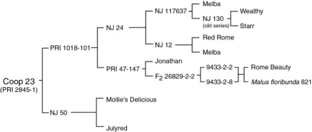 (PRI 2845-1 = PRI 1018-101 x NJ. 50) Представлен как «Гордость Уильямса» (Janick et al. 1988). Патент США на растение № 6268.