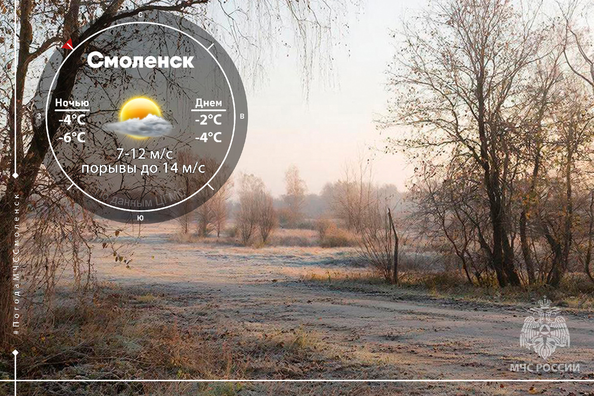 13 декабря на территорию Смоленской области придет облачность с редкими просветами ясного неба. Без существенных осадков. На дорогах гололедица. Ветер подует северо-западный со скоростью 7-12 м/с, порывы могут достигать до 14 м/с. Величина атмосферного давления 734 мм рт. столба, будет расти. 🔻 Температура воздуха: - по области: ночью -2°С…-7°С, днём -1°С …-6°С, - в Смоленске: ночью -4°С …-6°С, днём -2°С …-4°С. 🔹 Этот день согласно лунному календарю идеально подходит для проведения домашней уборки и активного шопинга. Если есть планы отправиться в магазин сегодня самое благоприятное время для удачных покупок. Однако, выходя из дома, стоит проявить особую осторожность на дорогах. МЧС России настоятельно рекомендует: ◾ выходи из дома заблаговременно, чтобы двигаться не торопясь; ◾ передвигайся осторожно, наступая на всю подошву, не спеши, избегай резких движений, смотри под ноги; ◾ внимательно переходи дорогу, перед выходом на проезжую часть убедись, что поблизости нет транспорта; ◾ за