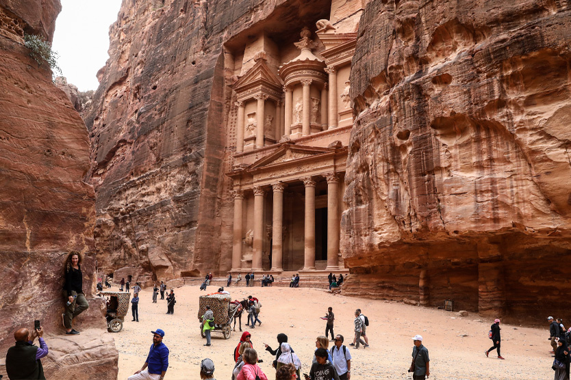 Петра скрывается в горах на высоте более 900 метров над уровнем моря. Чтобы добраться до древнего города, туристы проходят через узкий извилистый каньон Сик. Популярностью у путешественников пользуется в первую очередь высеченный в скале храм Эль-Хазне.