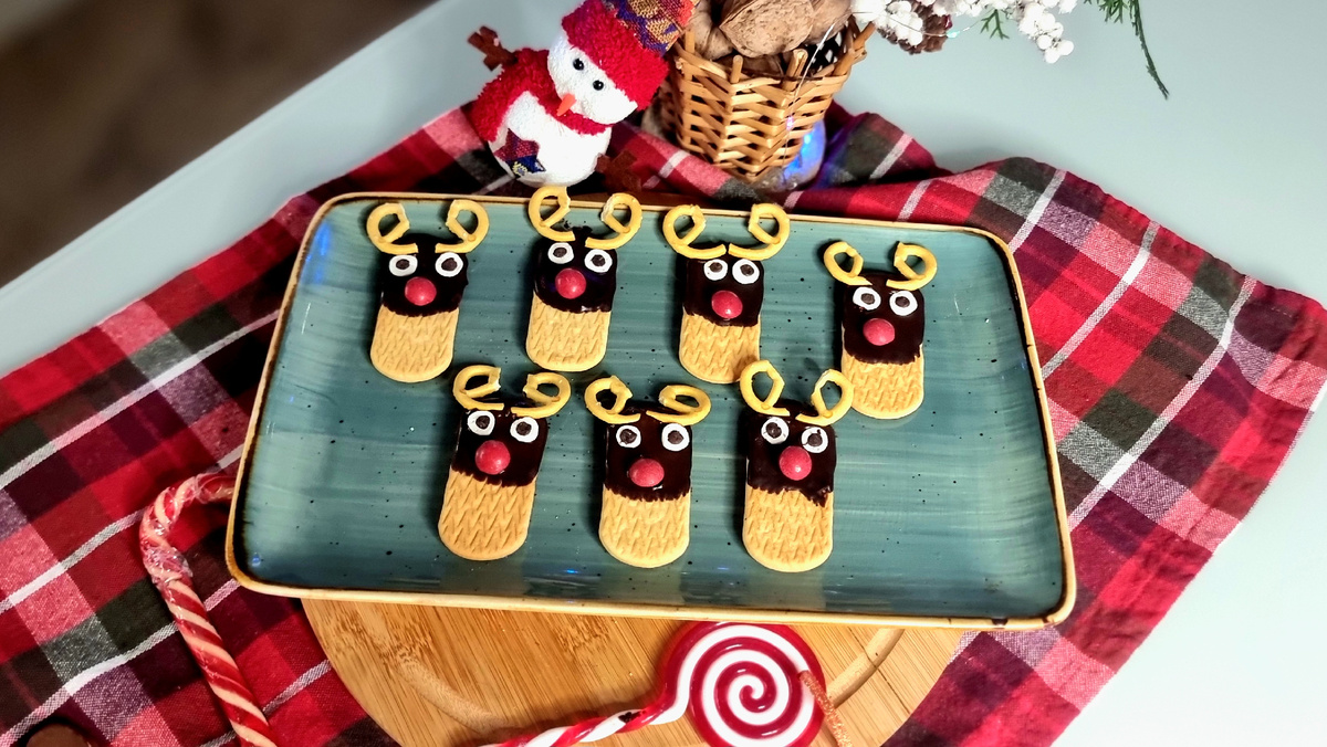 Ну что, друзья, почувствовали приближение Нового года? Скорее всего — не совсем. На улице сырой декабрь, ни снежных сугробов, ни хрустящего морозного утра… Если только вы не живёте где-нибудь в Сибири. В средней полосе зима редко балует нас настоящей сказочной погодой, и новогоднее настроение приходится создавать самим. Когда мы были детьми, этим занимались родители. Они украшали дом, готовили угощения, тайком развешивали подарки под ёлкой. А теперь мы выросли — и новогоднее волшебство становится нашей заботой. И знаете, в этом тоже есть своя магия. Особенно когда рядом дети, которые верят каждому сияющему огоньку. Один из самых простых и уютных способов почувствовать праздник — сделать что-то творческое вместе. Например, приготовить милое печенье в виде оленей. И самое приятное: печь ничего не нужно! Всё, что требуется, — немного фантазии и хорошее настроение. Что понадобится: готовое продолговатое печенье шоколад (любой, который можно растопить) красные M&M’s для носиков крендели-кр