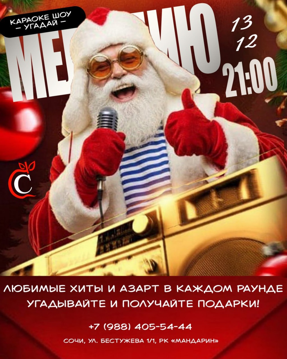 Караоке шоу "Угадай мелодию"🎄🎙 13.12 СБ | 🕘 начало в 21:00 Субботу оставляем для самых звонких нот декабря 🎤✨ 🎶 Узнавай хиты с первых нот 😂 Участвуй в конкурсах и музыкальных дуэлях 🍸 Пробуй сезонные коктейли, фирменный сидр, пиццы и пасту 🏆 Получай подарки, если ты самый быстрый и музыкальный ✨ Атмосфера вечера — яркая, теплая, громкая и очень веселая! А так же, тебя ждут наши новогодние предложения: 🎁 -10% именинникам 🍎 Фруктовая тарелка при бронировании до 20:00 🧃 Башня фирменного сидра при депозите от 5000₽ для компаний 🍕 Пицца в подарок при брони от 4 человек (Акции не суммируются) Завтра будет столько смеха и ярких моментов, что к Новому году ты уже войдёшь с прокачанным голосом и идеальным настроением. 😍 Забронировать столик: 🤍+7 (988) 405-54-44 🤍Сочи, ул. Бестужева 1/1, РК «Мандарин» ➡️ @sidreriaadler