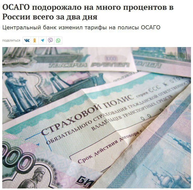 📈 ОСАГО в ряде регионов за два дня подорожало до 60