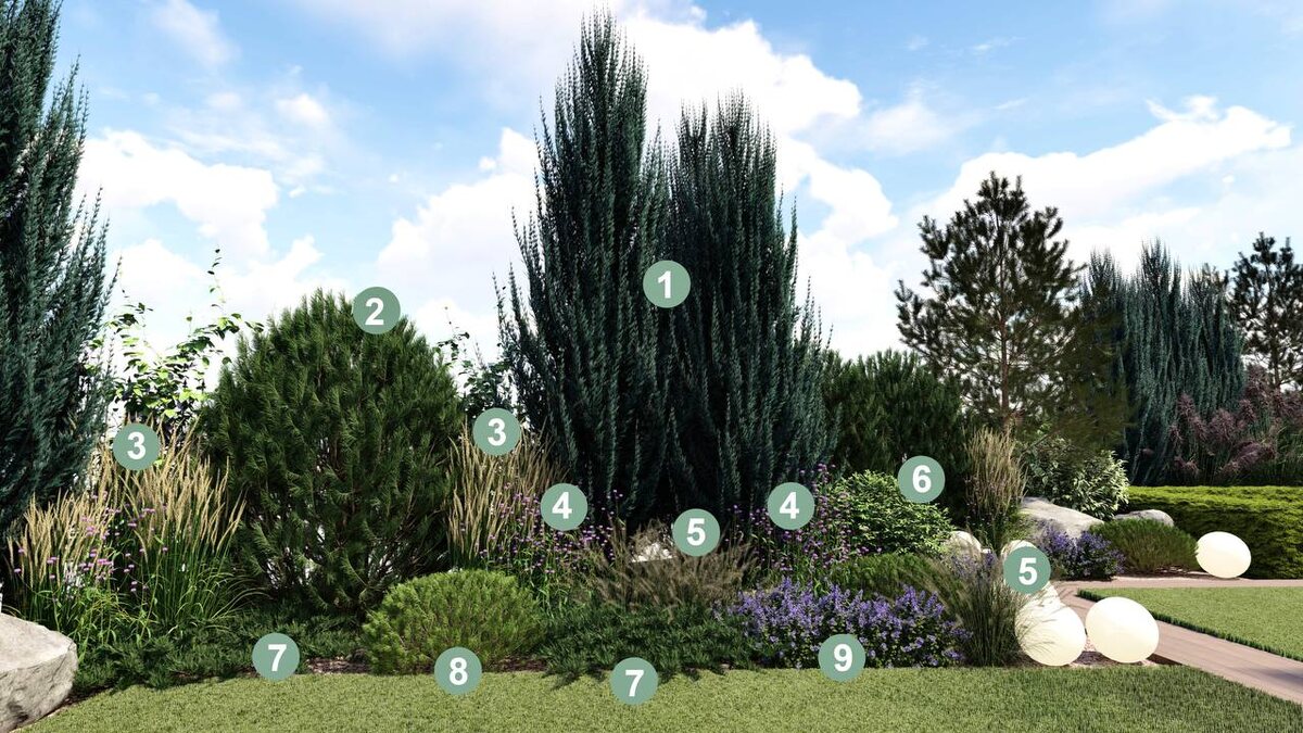Создавая проект, мы продумываем каждую деталь — от выразительных акцентов до мягких текстур у земли 🌿✨ Вот подборка растений, которые формируют настроение участка и создают гармонию круглый год: 1. Ель колючая «Edith» — выразительный вертикальный акцент 🌲 2. Дуб черешчатый «Fastigiata» — строгая архитектурная форма 🌳 3. Туя западная «Smaragd» — вечнозелёная классика для структуры 🌿 4. Вейник остроцветковый «Karl Foerster» — динамика и движение в саду 🌾 5. Сосна горная «Pumilio» — мягкие куртины у земли 🌲 6. Пион молочноцветковый «Канзас» — яркий сезонный акцент 🌸 7. Можжевельник средний «Gold Coast» — тёплый золотистый штрих ✨ 8. Овсяница красная — фактура и естественность 🍃 9. Барбарис Тунберга «Atropurpurea Nana» — компактная форма и насыщенный цвет 🌺 Так мы создаём участки, которые выглядят цельно, стильно и живо в любое время года. Если Вы хотите подбор растений под Ваш участок — мы с удовольствием поможем 🌱💬