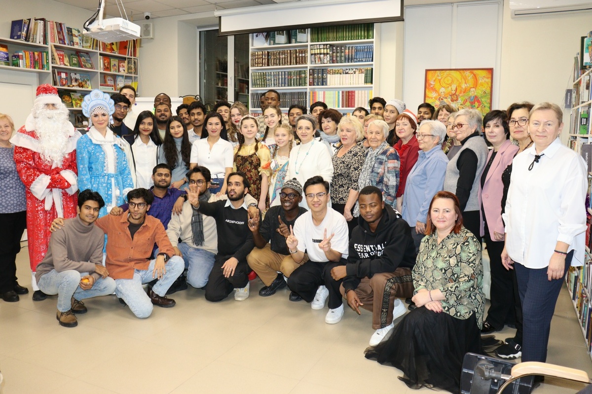 Новогодний праздник уже пришел в культурное пространство Воронежа, и это оказался визит с разных концов света. Уютный и веселый вечер национальных культур, посвященный встрече Нового года в России и в самых разных уголках мира, состоялся в арт-зале модельной библиотеки № 32 имени Г.Н. Троепольского в четверг 10 декабря. Открыла мероприятие ставшая народной песня России «Сапожки русские» в исполнении воспитанниц Образцового детского коллектива Центра народной культуры и искусства «Матрешка» (руководитель Ольга Голованова). Задорная композиция, в которой остроумно переплетены мелодичность русского фольклора и интонации современной эстрады, задала ритм и настроение всей встречи. На вечере также прозвучал фрагмент видеообращения Президента России Владимира Путина к россиянам во время встречи 2025-го года, в котором прозвучали слова о важности единства нации. Коллектив библиотеки призвал всех и в предстоящую скоро праздничную ночь снова включить телевизор и посмотреть обращение нашего Прези