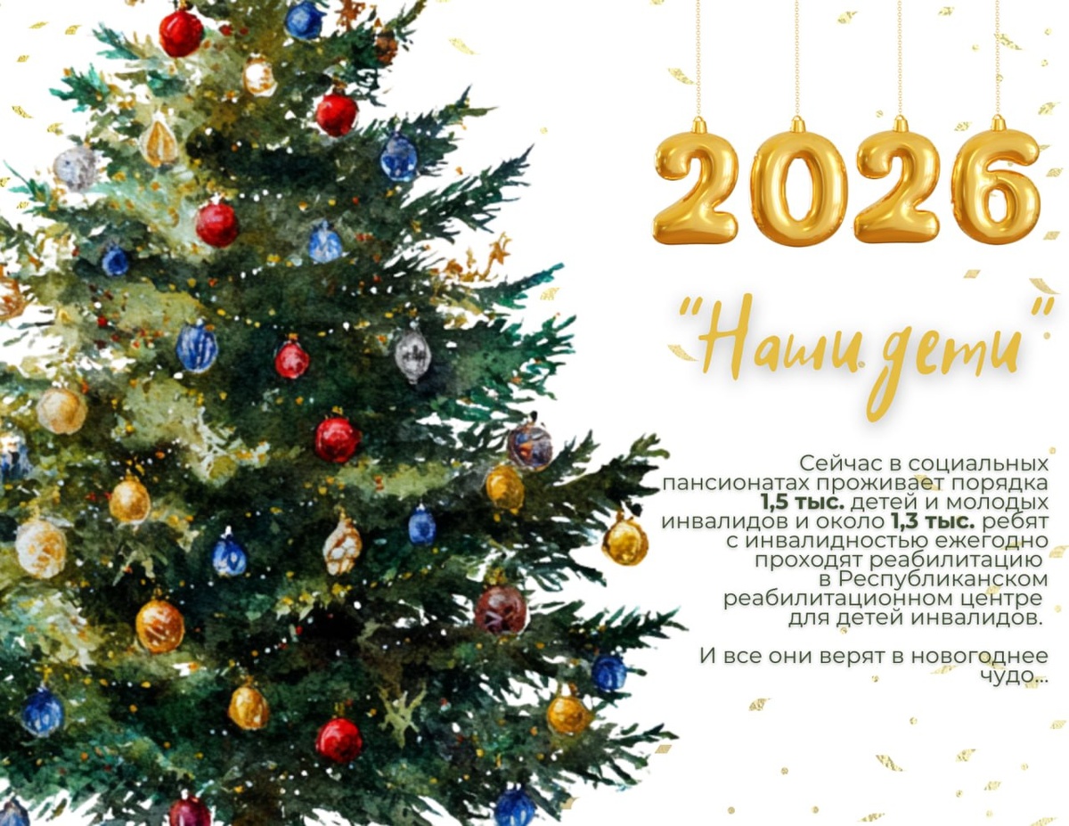 🎄Это тоже "Наши дети". На сайте Минтруда и соцзащиты создали спецраздел, где вы найдете все самое важное и актуальное об акции 🗓 пройдет с 15 декабря 2025 года - 14 января 2026 года 🎁 Традиционно работники системы Министерства труда и социальной защиты поздравят детей в стационарных учреждениях социального обслуживания. Это 9 детских социальных пансионатов, а также Республиканский реабилитационный центр для детей-инвалидов. ➖➖➖➖➖ ✨Совершить доброе дело приглашаются все неравнодушные. ➡️Всю подробную информация можно найти здесь. ➖➖➖➖➖ 🎄Сейчас в социальных пансионатах проживает 1,5 тысяч детей и молодых инвалидов и порядка 1,3 тысяч ребят ежегодно проходят реабилитацию в РРЦДИ. И все они верят в новогоднее чудо… Как и мы в детстве.