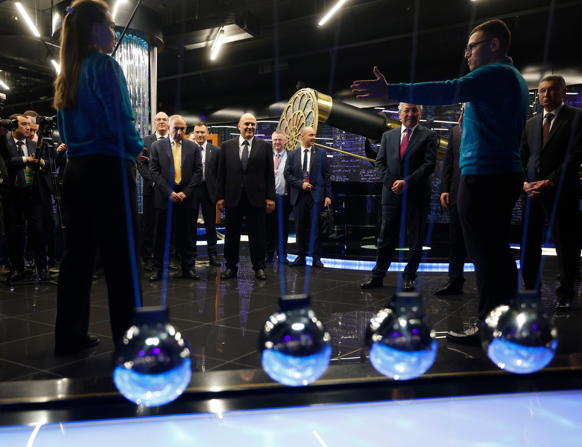 Молодые ученые, которые презентуют экспонаты, рассказывают, что основная задача музея – объяснить сложные термины простыми словами, примерами и экспериментами. •Главам делегаций продемонстрировали маятник Чеботаева. Это группа шаров на подвесах, демонстрирующая, как взаимодействуют волны. Такое взаимодействие – интерференция, пояснил студент НИЯУ МИФИ из Азербайджана Ниязи Нагдиев. Интерференция может использоваться, например, в геофизике. Метод сейсмической интерференции, в основе которого лежит физический принцип интерференции волн, применяется для изучения подземных структур путем анализа взаимодействия сейсмических волн. •Гостей музея также заинтересовал экспонат «Масштаб времени». Как рассказала студентка НИЯУ МИФИ из Таджикистана Гулбахор Худжамерова, сейчас эталоном точного времени являются атомные часы, которые дают сбой на одну секунду за 30 млрд лет. Системы ГЛОНАСС, GPS и Galileo используют атомное время для обеспечения высочайшей точности позиционирования объекта на Земле.