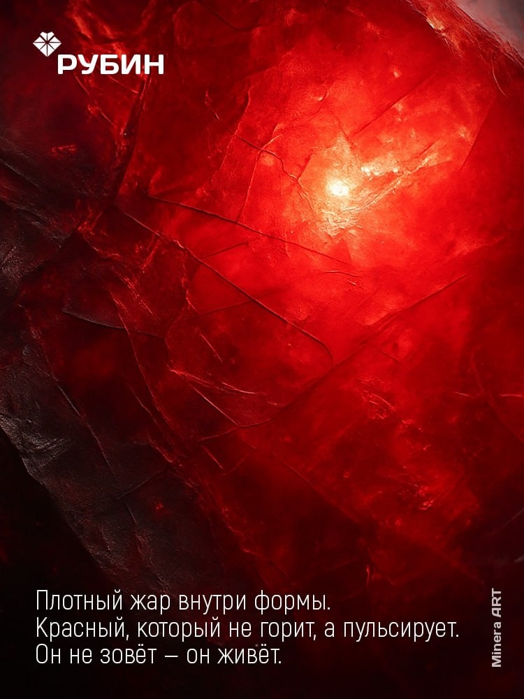 Рубин — не про блеск, а про пульс. Его красный — не поверхностный, а собранный внутри, как жар под кожей. На ощупь — гладкий, прохладный, но с ощущением силы, которая не стремится выйти наружу. Цвет может быть густым, почти бордовым, или ярким, как точка напряжения. Он не ласковый. И не требует. Просто присутствует — плотно, точно, без лишнего. Это не камень «для». Это камень, который не нуждается в объяснении. Он не спрашивает, готова ли ты. Он просто остаётся с тем, кто не отводит взгляд. ___________ Minera ART — направление, в котором мы пробуем почувствовать каждый минерал — и делимся результатом в своей группе.