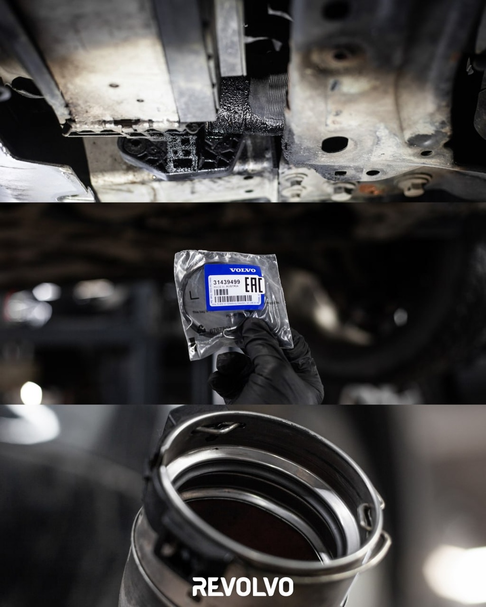 В ходе планового ТО Volvo XC90 SPA была выявлена неисправность - течь масла в районе правого патрубка интеркулера