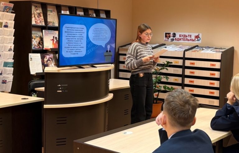12 декабря в День Конституции РФ школьники саранской школы №11 посетили библиотеку им. А.С. Пушкина. Для ребят сотрудники библиотеки подготовили насыщенную программу, состоящую из лекции и увлекательной викторины, посвящённых Основному закону государства — Конституции РФ. Школьники узнали об истории создания документа, ознакомились с основными положениями Конституции, касающимися прав и свобод граждан, обязанностей перед государством и обществом. Кроме того, сотрудники рассказали несколько интересных фактов. Например, что теперь для представителей молодого поколения выпустили специальную версию Основного закона «Конституция РФ для зумеров», где вместо общепринятой терминологии используются сленги. После знакомства школьники отвечали на вопросы викторины. Ребята активно участвовали, стараясь показать свои знания.