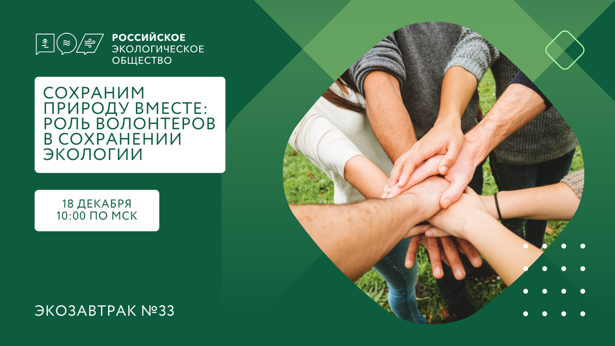 18 декабря в 10:00 состоится очередной Экозавтрак Российского экологического общества посвященный теме: «Сохраним природу вместе: роль волонтеров в сохранении экологии». Тема Экозавтрака посвящена не просто вопросам про экологию и существующие проблемы, а людям, которые вовлечены в самые разные экологические проекты от посадки леса до уборки мазута. В ходе Экозавтрака постараемся дать общее видение роли экологического волонтёрства, рассказать про лучшие практики и барьеры и поделиться успешными кейсами добровольческих экопроектов. Какие существуют актуальные экологические проблемы, где критично участие волонтёров. Какие сегодня существуют механизмы поддержки волонтёров (государство, бизнес, НКО). Участники Экозавтрака: Алексей Горшков, руководитель регионального отделения Российского экологического общества по Республике Крым; Светлана Леонтьева, руководитель регионального отделения Российского экологического общества по Республике Башкортостан, доцент кафедры нефтехимии и химической