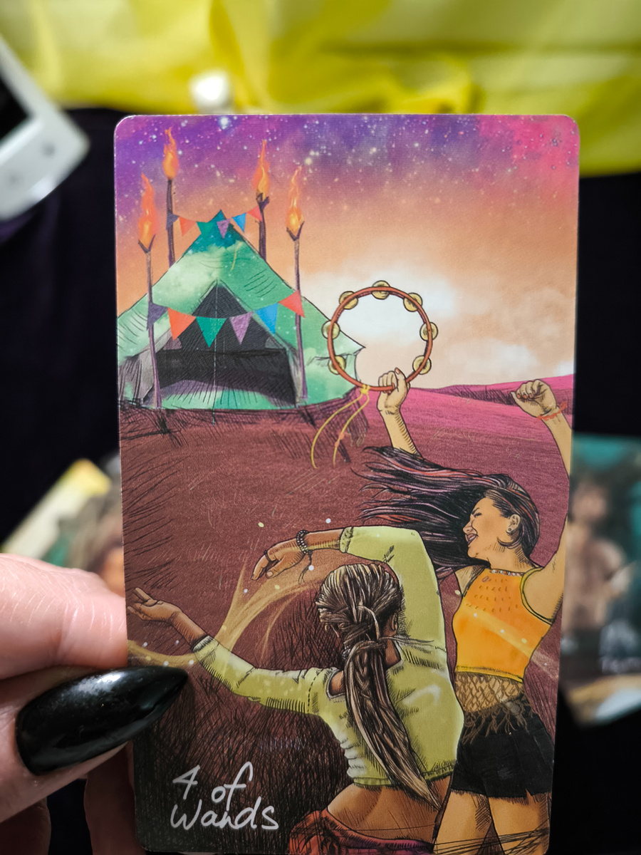 Сегодняшний день озарён энергией **Четвёрки Жезлов** — карты радости, лёгкости и искреннего человеческого тепла. Это тот редкий момент, когда жизнь словно сама делает шаг навстречу, предлагая немного праздника без повода — или с самым лучшим поводом из возможных: тем, что вы живёте, движетесь, растёте и позволяете себе радоваться. Приветствую вас на моем канале "Отливки воском. Руны. Таро"! Меня зовут Татьяна, я практикующий маг с 20-летним опытом. В своей практике я использую отливки воском, руны, таро. Провожу диагностики и чистки, снятие наведенного и родового негатива, крадников и приворотов. Использую светлую магию, работаю с богами Северной Традиции, веду обучение рунами и отливкам воском. На этом канале я делюсь своим опытом магической работы, своими магическими знаниями, а также интересными случаями из своей практики. Присоединяйтесь ко мне в увлекательном путешествии по загадочному миру мистики и магии! Две молодые девушки танцуют под звонкий ритм бубна, их движения свобод