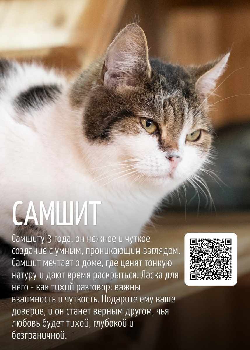 Все животные здоровы, привиты, стерилизованы и готовы к переезду. Специалисты с радостью расскажут о каждом хвостике – о характере, привычках, особенностях, а также дадут советы по адаптации и уходу.