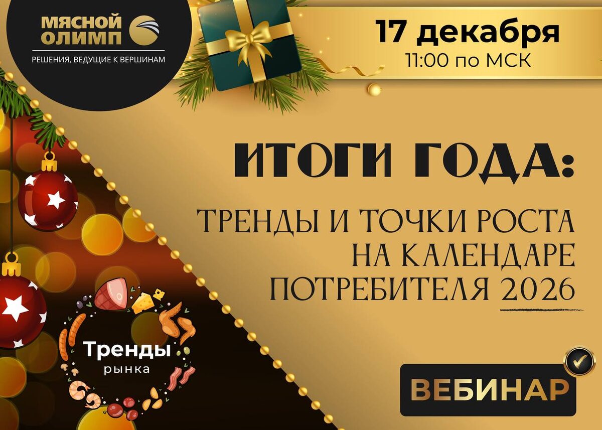 😘😗😙😚😋от компании «Мясной Олимп»👇 «Итоги года: тренды и точки роста на календаре потребителя 2026» 🗓 Календарь потребителя диктует новые правила игры: одни тренды открывают окна возможностей, другие - создают вызовы. Приходите на вебинар «Мясного Олимпа», где разберут конкретные инструменты, которые дадут рост в новых условиях: 🍖 Какие тренды в мясопереработке перевернули весь рынок в 2025? 🪙 Как тренд на эффективность создает новые статьи дохода? 📱 Почему тренд на цифровизацию — ваша правая рука для контроля каждого этапа производства? 🥗 Как менялся тренд на готовую еду и за год стал самым быстрорастущим сегментом? 🔧 Вы управляете производством или оно управляет вами? Вся власть — в тренде на бесперебойность. ⚡️ РЕГИСТРАЦИЯ: https://clck.ru/3Qn8tM ⚡️ 📆 Дата: 17 декабря в 11:00 👨🏻💻 Онлайн. Участие бесплатное. Основные вопросы вебинара: 1️⃣Чем хуже социально-экономическая ситуация в стране, тем больше у технолога работы. Аналитика индустрии и прогноз 2025-2030