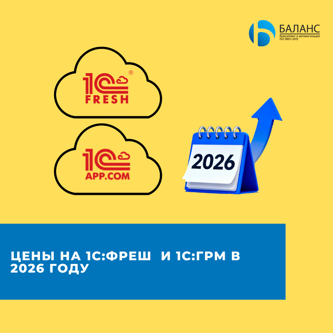Компания «Баланс» информирует клиентов о предстоящих изменениях в тарифах 1С:Фреш, 1С:Готовое рабочее место, 1С:Облачную инфраструктуру и 1С:Аренду программ с 1 января 2026 года. Фирма «1С» в инфописьме опубликовала новые рекомендованные розничные цены. Цены на 2026 год 1С:Фреш Стоимость тарифов «Базовый», «1С:Розница», «1С:Садовод» и «1C:Гаражи» увеличивается на 10%. Тариф «1С:Фреш ПРОФ» вырастет на 14%, при этом «1С Фреш ПРОФ» приравнивается по цене к 1С:Комплекту поддержки ПРОФ. Тариф «ПРОФ» при непрерывном продлении договора 1С:ФРЕШ тариф «ПРОФ» на 1 мес- 7751 руб 1С:ФРЕШ тариф «ПРОФ» на 3 мес - 16755 руб 1С:ФРЕШ тариф «ПРОФ» на 6 мес - 30259 руб 1С:ФРЕШ тариф «ПРОФ» на 12 мес - 57000 руб 1С:ФРЕШ тариф «ПРОФ» на 24 мес -102600 руб Тариф «ПРОФ» без скидки при прерывании договора на срок более 30 дней 1С:ФРЕШ тариф «ПРОФ» на 1 мес - 9301 руб 1С:ФРЕШ тариф «ПРОФ» на 3 мес - 20104 руб 1С:ФРЕШ тариф «ПРОФ» на 6 мес - 36 307 руб 1С:ФРЕШ тариф «ПРОФ» на 12 мес - 68400 руб Тариф «Базовы