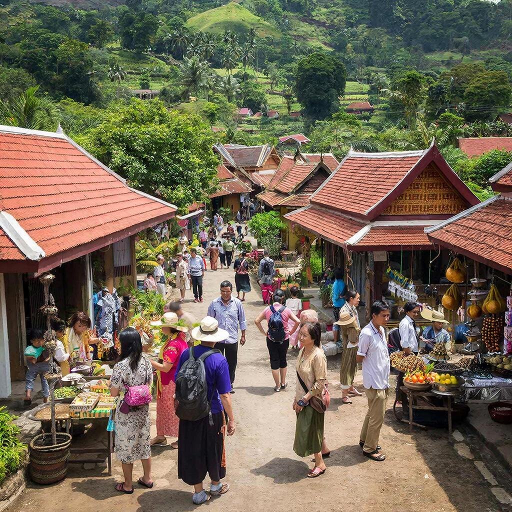 В деревне можно увидеть традиционные дома на сваях, понаблюдать за ремесленным производством текстиля и плетением. Женщины продают изделия ручной работы — шарфы, браслеты и сувениры. Атмосфера деревни позволяет прикоснуться к быту и традициям, которые почти исчезли в современном мире.