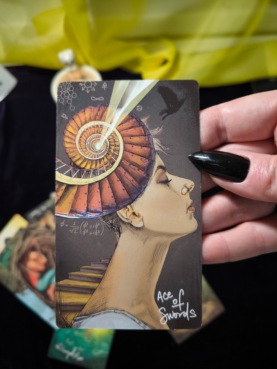 Сегодняшний день проходит под энергией **Туза Мечей** — аркана, который приносит ясность, чистое мышление и внутренний прорыв. Это тот момент, когда мысль становится настолько острой и точной, что разрезает туман, сомнения и хаос, возвращая вас к пониманию сути происходящего. Приветствую вас на моем канале "Отливки воском. Руны. Таро"! Меня зовут Татьяна, я практикующий маг с 20-летним опытом. В своей практике я использую отливки воском, руны, таро. Провожу диагностики и чистки, снятие наведенного и родового негатива, крадников и приворотов. Использую светлую магию, работаю с богами Северной Традиции, веду обучение рунами и отливкам воском. На этом канале я делюсь своим опытом магической работы, своими магическими знаниями, а также интересными случаями из своей практики. Присоединяйтесь ко мне в увлекательном путешествии по загадочному миру мистики и магии! На карте — профиль молодой женщины с закрытыми глазами. Её внимание обращено внутрь, потому что именно там, в глубине сознания