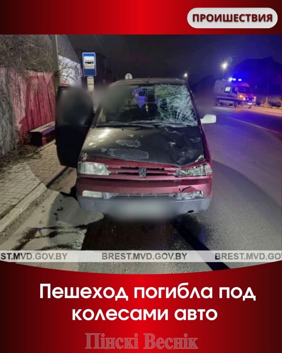 4️⃣1️⃣1️⃣ ✏️6 декабря около 20.30 62-летний житель Пинска, управляя автомобилем Peugeot, совершил смертельное ДТП. 🟦Двигаясь по улице Янки Мавра в направлении от Дорожной к Достоевского, вблизи пересечения с улицей Франциска Скорины наехал на 70-летнюю местную жительницу. 🟦Женщина переходила проезжую часть по нерегулируемому пешеходному переходу справа налево по ходу движения автомобиля. В результате ДТП она скончалась на месте происшествия. ✏️Возбуждено уголовное дело. 📱Ютуб 📱ВК 📱ИНСТАГРАМ 📱ОК 📱ФЕЙСБУК 📱ТИК ТОК Прислать новость