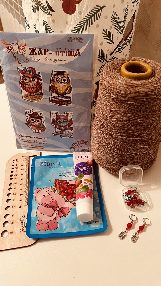 Всем добрый вечер!🫶 Мне сегодня написала Алиса, ее канал « Алиса в стране вязания», что мой подарок 🎁 ждет меня в пункте выдачи. Конечно же я его получила.😍 Не знаю как вы, ну я всегда очень радуюсь подаркам, эмоции всегда переполняют и чувство благодарности к дарителю просто зашкаливает! Это невозможно выразить словами.🥰 Вот такая красота ко мне приехала. Посмотрите на этих милах, они мои любимки, совуньи мои любимые птицы, но есть одно. НО☝️ я не умею вышивать!😂 Прийдется учиться, видимо, в следующем году буду брать в руки иголку, интересно, что из этого получится у меня?!😁 Милейшие маркерочки🦉👍😍 Вот такая красивая бобинка пряжи! Еще вот такие полезности, которые всегда нам нужны! Просто огромнейшее спасибо Алисе за чудесный подарок и подаренные эмоции!!!🫶🥰👍💯 Всем желаю отличных выходных! До встречи!!!👋