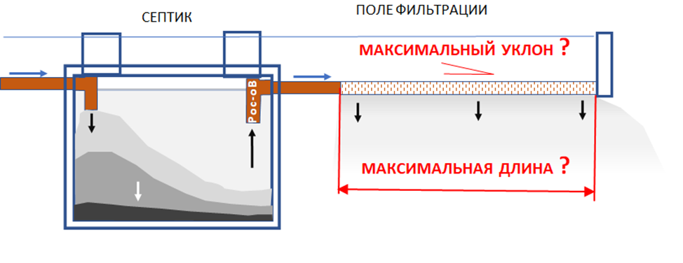 Допустимые уклон и длина оросительного трубопровода поля фильтрации септика