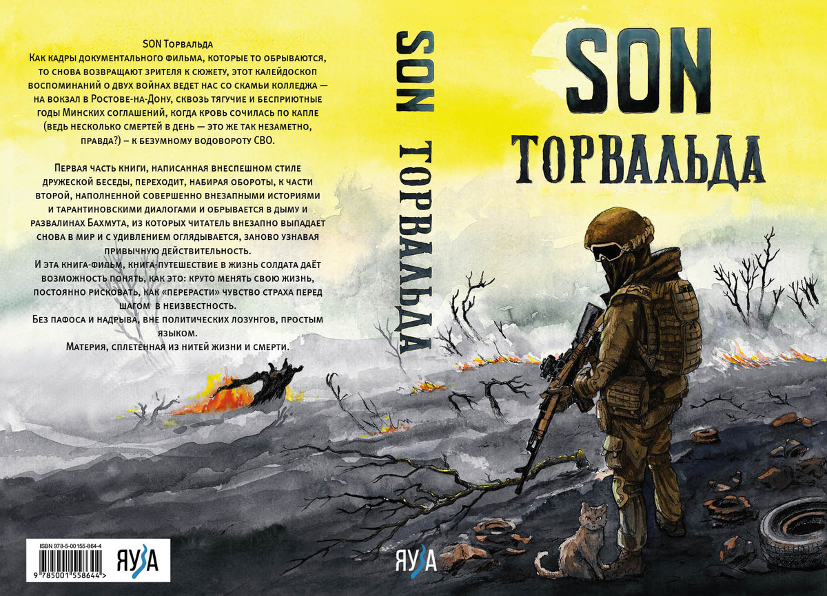 "Son Торвальда", как кадры документального фильма, которые то обрываются, то снова возвращают зрителя к сюжету, этот калейдоскоп воспоминаний о двух войнах ведет нас со скамьи колледжа - на вокзал в Ростове-на-Дону, сквозь тягучие и бесприютные годы Минских соглашений, когда кровь сочилась по капле (ведь несколько смертей в день - это же так незаметно, правда?) - к безумному водовороту СВО. Первая часть книги, написанная в неспешном стиле дружеской беседы, переходит, набирая обороты, к части второй, наполненной совершенно внезапными историями и тарантиновскими диалогами и обрывается в дыму и развалинах Бахмута, из которых читатель внезапно выпадает снова в мир и с удивлением оглядывается, заново узнавая привычную действительность. И эта книга-фильм, книга-путешествие в жизнь солдата дает возможность понять, как это: круто менять свою жизнь, постоянно рисковать, как "перерасти" чувство страха перед шагом в неизвестность. Без пафоса и надрыва, вне политических лозунгов, простым языком