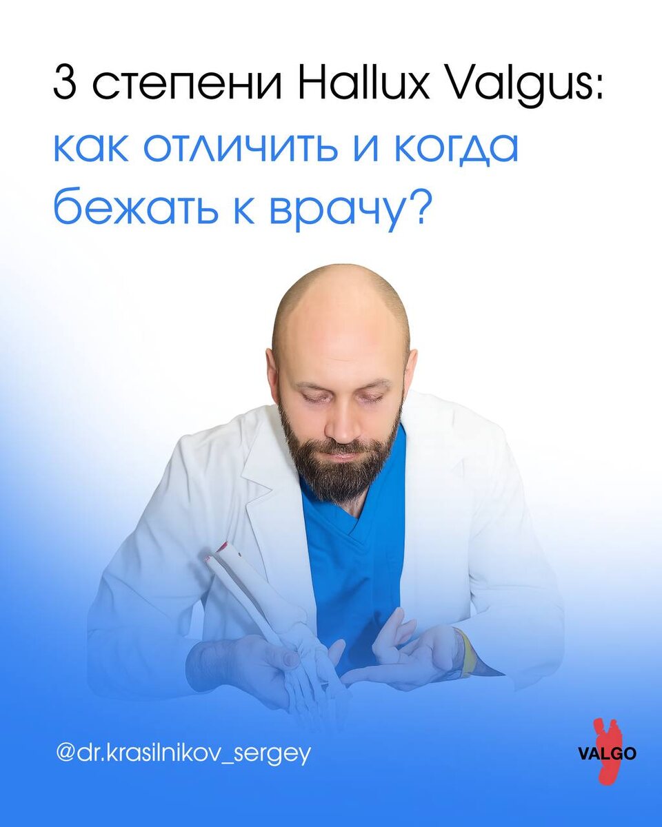 Сегодня у нас образовательная статья! Итак, какие же есть 3 степени вальгусной деформации стопы? I степень Угол отклонения первого пальца — менее 20 градусов. Незначительное отклонение первого пальца Небольшое выпячивание в области сустава Дискомфорт возникает эпизодически, чаще при ношении тесной обуви Периодический дискомфорт, эстетический дефект II степень Угол отклонения первого пальца — 25-35 градусов. Заметное отклонение первого пальца Усиленное давление на головку первой плюсневой кости Частая боль после нагрузки Затруднение в подборе обуви III степень Угол отклонения первого пальца — больше 35 градусов. Существенное отклонение первого пальца Постоянная боль, ограничение движений в суставе Сильное затруднение в подборе обуви Вовлечение малых пальцев (молоткообразная деформация) Когда необходимо обратиться к врачу-ортопеду? Рекомендую прийти ко мне на консультацию при наличии следующих признаков: боль сохраняется в течение нескольких недель; заметное увеличение «косточки
