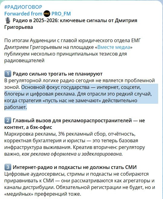 Оу, надо ж. Юрист ЕМГ провозгласил начало долгих публичных похорон индустрии российского радиовещания. Говорит - не нужно оно вообще никому, даже государству, ибо ни на что не влияет. Вспомнился сразу девиз одного из начальников ВГТРК, курировавших Радио Юность: лучше мы не будем делать вообще ничего, чем сделаем что-то не то...