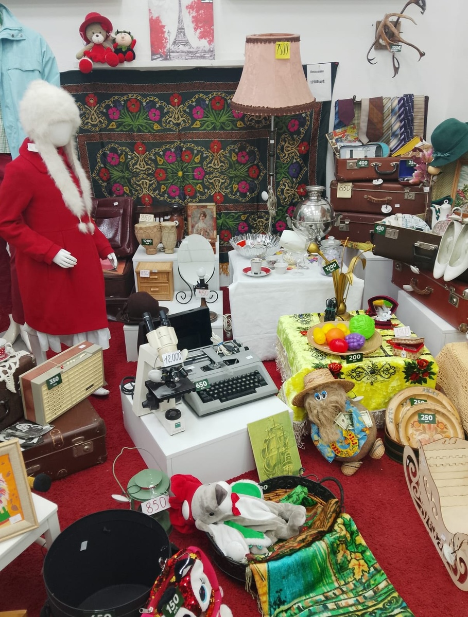 Инсталляция в стиле "советская квартира". Все цены хорошо видны, можно полюбопытствовать. Я вот чемоданы рассматривала, есть у меня такая мечта. Но обычно или дорого, или очень большие, или состояние плохое, или не просто не то 🤷