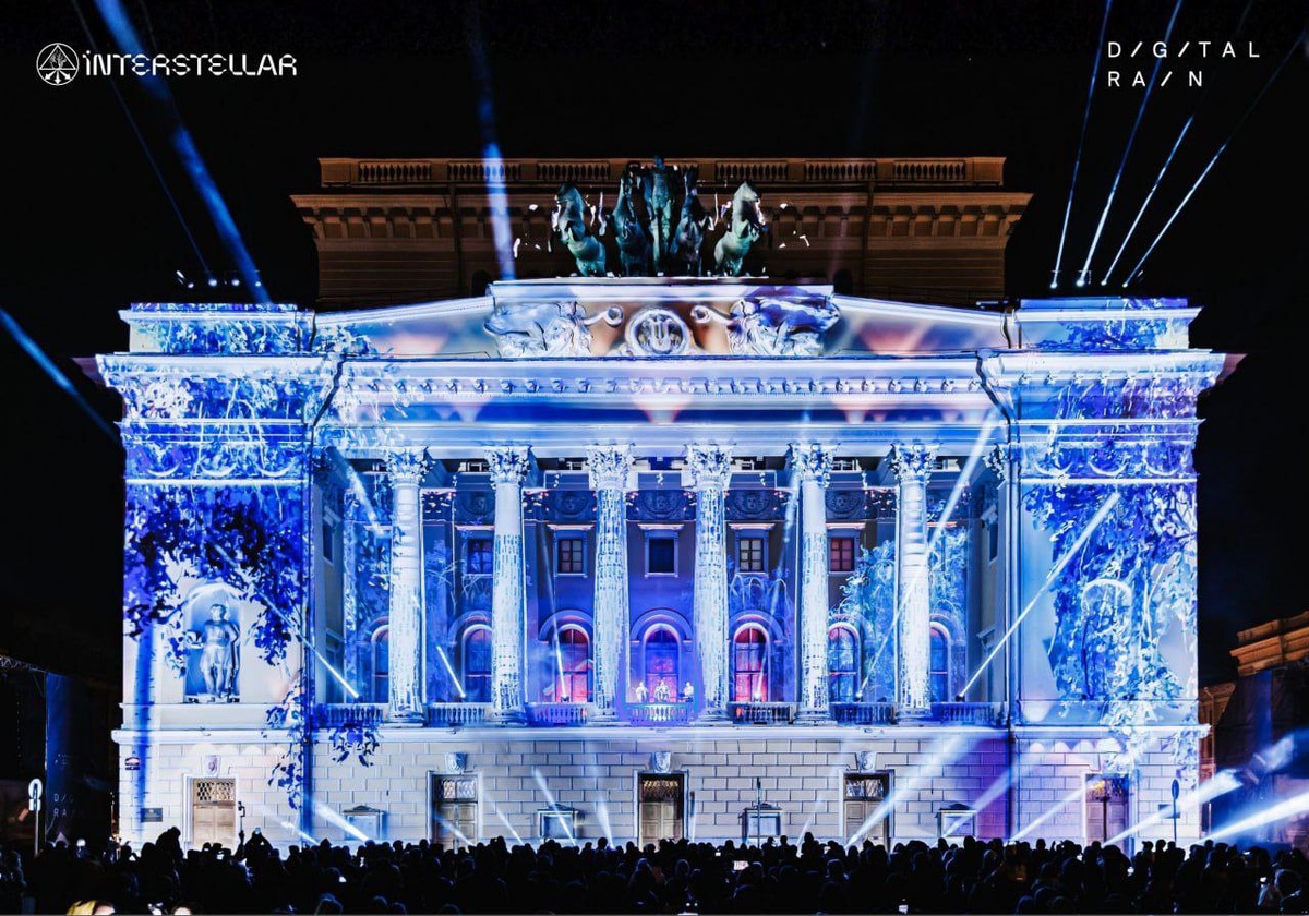 INTERSTELLAR PRODUCTION, специально для DIGITAL RAIN На закрывающем шоу фестиваля от Smartligtht, фасад Александринского театра Два мэппинга. Две задачи. Два разных художественных подхода. Каждый требовал отдельной визуальной логики и своего пайплайна. И фасад Александринского театра стал для нас полноценным архитектурным партнёром. ⚡️ИНТРО ЦЕРЕМОНИИ ЗАКРЫТИЯ Архитектура была разобрана на смысловые и геометрические модули — будущие точки для световых акцентов. Никаких универсальных шаблонов! Контент собирался как партитура: вступление, развитие, кульминация, затухание. Геометрия работала на слом и восстановление классических линий, свет и анимация — на переходы между эпохами и состояниями. After Effects, Cinema 4D, авторская система ритмических переходов — весь пайплайн был настроен на одно: создать вступление, в котором архитектура перестаёт быть фоном и становится медиумом фестиваля. ⚡️ КОНЦЕРТНЫЙ МЭППИНГ для Zventa Sventana Музыка сама диктовала нам форму: электронная вибрац