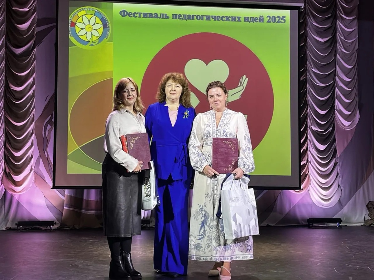 10 декабря 2025 года в Московском областном центре дошкольного образования (ГГТУ г.Орехово-Зуево) были подведены итоги областного Фестиваля педагогических идей- 2025. Заместитель директора Черных Татьяна Сергеевна, воспитатели Бондаренко Екатерина Владимировна и Якобсон Надежда Владимировна, а также семья Маруся Тимаковой стали ПОБЕДИТЕЛЯМИ в конкурсе лучших практик родительского просвещения «Лаборатория семейного счастья» МБОУ "Гимназия №11" отделение дошкольного образования №3 (ул. Комсомольская д.12а)
