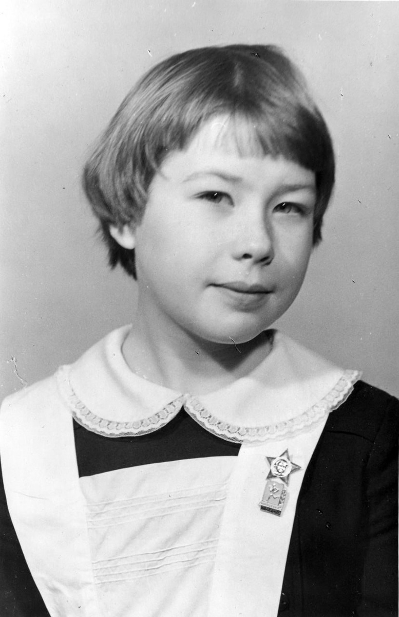 Девочка школьница с октябрятской звездочкой и знаком 3-го юношеского разряда образца 1961 года