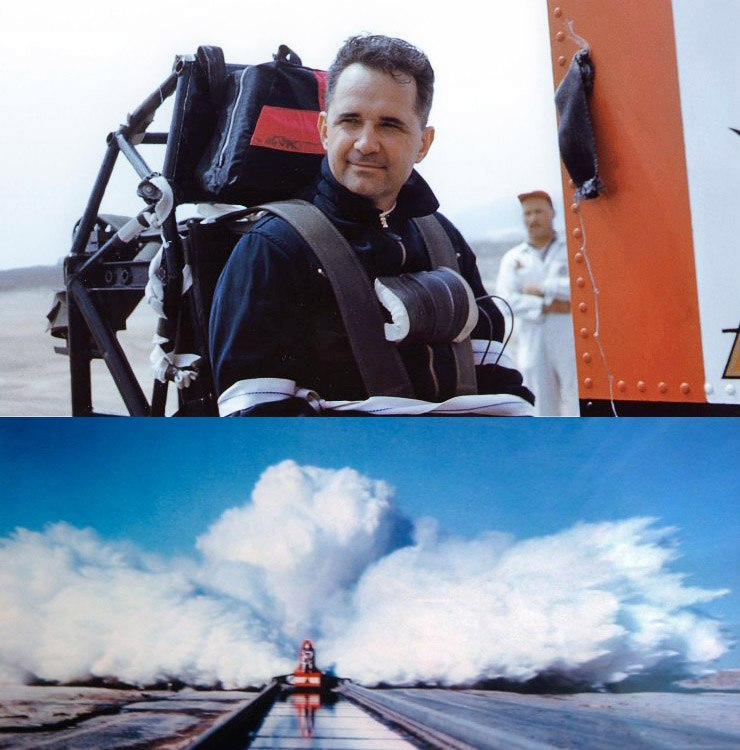 Описания экспериментов, которые в 1950–х добровольно ставил над собой доктор и по совместительству полковник ВВС США Джон Стэпп, порой напоминают отчеты о медицинских опытах нацистов: «Ощущение было такое, будто глаза вырывают у меня из глазниц. Затем я поднял свои веки пальцами, но ничего не видел. Меня положили на носилки, и через минуту-другую я начал видеть голубые искорки... минут через восемь я увидел, как один из медиков машет у меня перед лицом пятерней, и я смог сосчитать пальцы. К этому моменту я уже понял, что отслоения сетчатки на этот раз не произошло, и я не ослеп». Джон Пол Стэпп (1910–1999) – знаменитый американский исследователь перегрузок, в первую очередь т. н. отрицательных, возникающих при торможении. Во время рекордного испытания 1954 года платформа с исследователем при помощи пороховых ускорителей достигла скорости свыше тысячи км/ч (едва не преодолев звуковой барьер), а затем полностью остановилась всего за 1,4 секунды, обеспечив отрицательное ускорение в 46,2 g